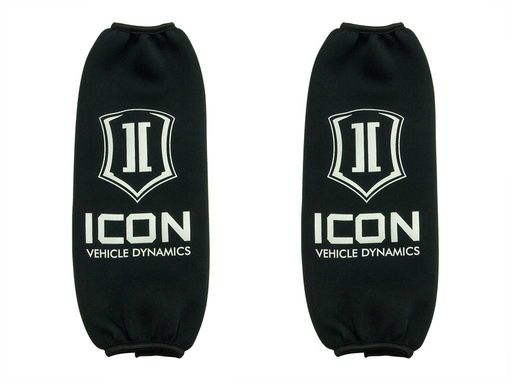 ICON Shock Wraps are a must have for vehicles that see Extreme Weather Conditions or Dirty / Muddy Off-Roading more often then not. These neoprene coil over shock protection covers offer an added layer of resistance keeping dirt, mud, grime, snow, harsh road salts / spray's and rocks from getting to the shock shafts or seals. This added layer of protection helps prevent damage like shaft pitting and cut seals that require you to have your shocks rebuilt prematurely. ICON Shock Wraps velcro on in seconds, and have a nice form fit with elastic banded ends to give you the most protection possible.