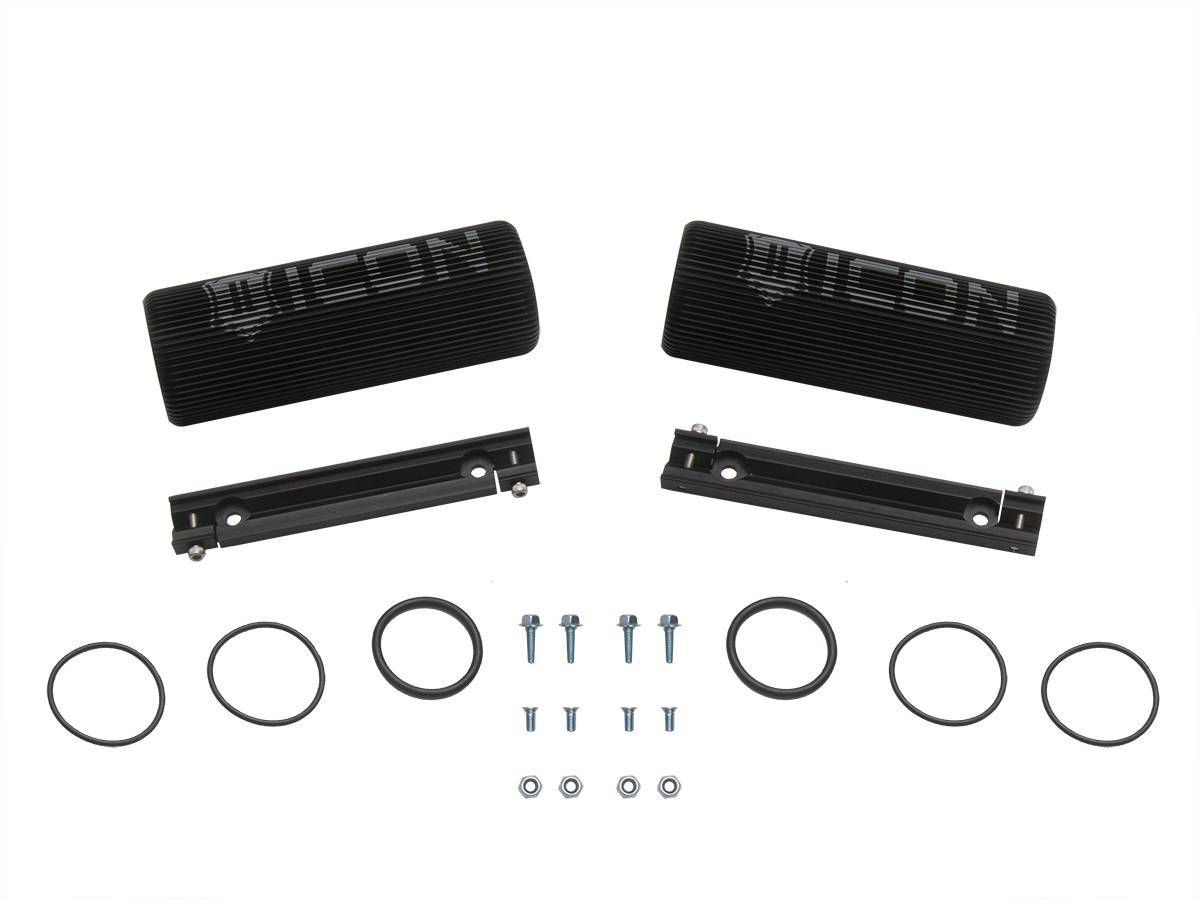 In an effort to continue our push for excellence ICON is proud to introduce finned reservoir upgrade kits for our 2.5 Series piggyback and remote reservoir shocks. These reservoir upgrade kits will improve the look of any ICON-equipped fender well while allowing for a cleaner install utilizing the included dove tail reservoir clamp. Aside from improving the aesthetics of an existing ICON shock, these finned reservoir kits have functional advantages as well. A surface area increase of 115% provides improved heat dissipation and allows for the shocks to be pushed harder for a longer duration of time before experiencing a reduction in damping ability. This is especially important in ICON CDC Valve shocks, as heat is generated in the reservoir as well as the shock body. Another functional benefit to these new ICON finned reservoirs is dent resistance. In extremely rare cases a standard aluminum reservoir can be hit with rocks or debris and if dented, affect the function of the shock. The design of the ICON finned reservoir increases rigidity, while utilizing a slightly larger outside diameter allowing the fins to take the brunt of potential off-road damage without distorting the inner sealing surface.;At this time ICON is not offering finned reservoirs as a production option, however these 2.5 Series Finned Reservoir Upgrade Kits can be installed by any ICON Authorized Shock Service Center. This 7.5†reservoir kit comes complete with a pair of finned reservoirs, dovetail reservoir clamps, and all necessary parts & hardware to complete the process.