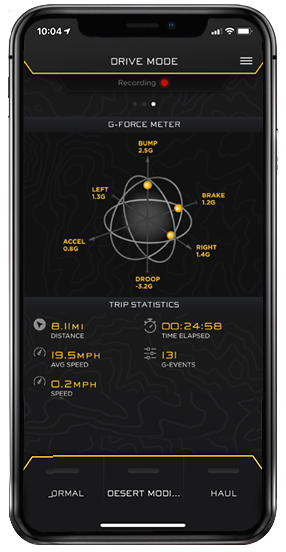 - Also functions as a data logger for time, speed, distance, and G-force allowing you to record data from your trips