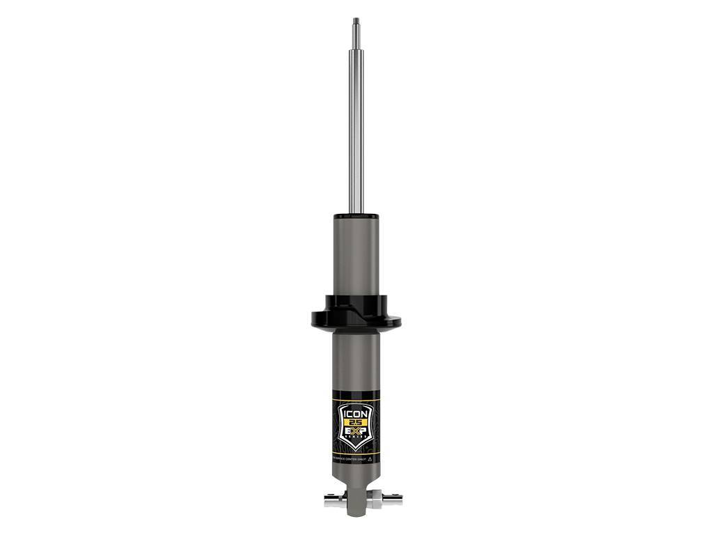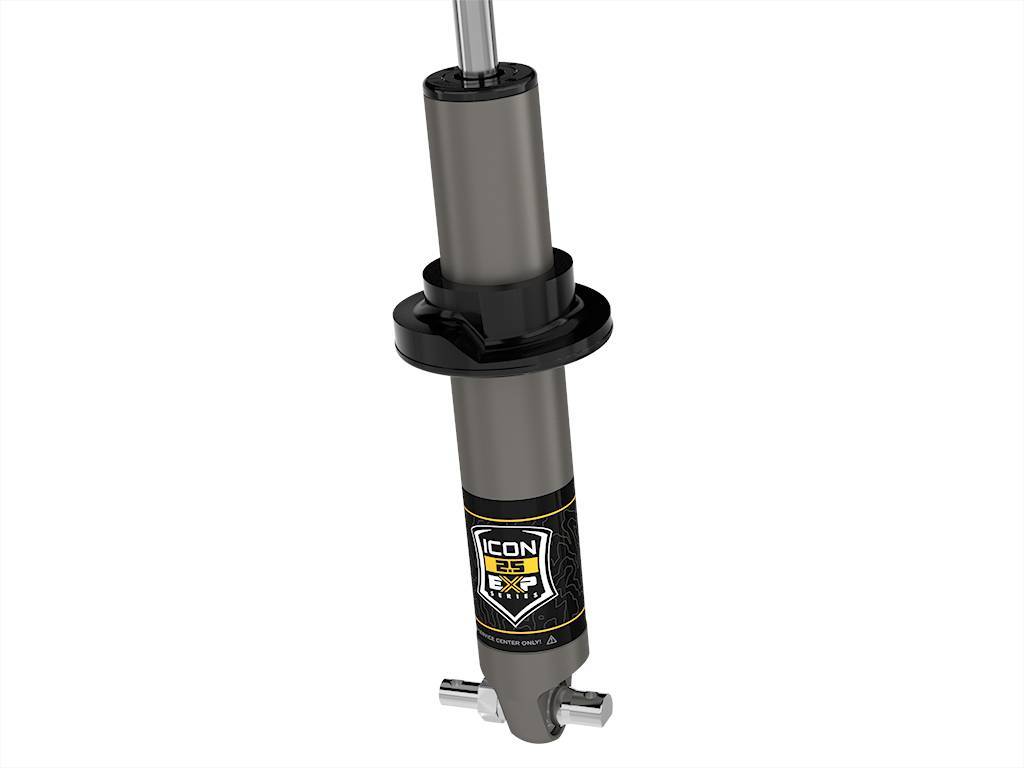 The 2021-Up Ford Bronco EXP Series front shock absorbers by ICON Vehicle Dynamics combine the performance of a fully rebuildable 2.5-inch diameter premium shock absorber with the convenience and cost-benefits of re-using the Broncos factory coil spring and other components. EXP bridges the gap between spacer lifts and threaded bodied coilovers, providing suspension lift, custom-tuned performance and maximum travel, all in an economical package.;EXP Series is based on ICONs proven 2.5-inch diameter Aluminum Series shock absorber, featuring a one-piece impact-extruded aluminum shock body. Hard anodizing provides a great-looking, consistent finish with superior resistance to abrasion and corrosion. The massive 7/8-inch diameter shaft is induction hardened and chrome plated. EXP shocks use the factory shaft-up orientation, with the shaft ends machined to re-use the Broncos OE upper shock and spring mounts.;The 6061-billet aluminum coil spring seat is CNC machined to fit the molded heavy duty urethane coil spring seat that is specifically design for fit each of the Bronco models OE coil springs. A series of snap-ring grooves machined into the shock body provide easily-selectable front-end ride height adjustment from 1.375" to 3†of lift over stock on Broncos equipped with the OE HOSS 1.0 suspension package.;EXP Series shocks utilize a one-piece digressive piston design and are custom tuned for the Bronco in conjunction with their stock coil springs to maximize damping performance and provide unsurpassed ride quality, on and off-road. The increased piston size and shock oil volume provided by the 2.5-inch diameter aluminum body also provide superior heat dissipation compared to the smaller, steel bodied OE shocks, resulting in longer-lasting shock performance over prolonged use at higher speeds and through rougher terrain. For those who would like to further tune their suspension, EXP shocks are fully re-valvable (and rebuildable) by any qualified shock technician, with parts available from ICON.;HOSS 1.0 is Ford's "base" suspension system for Broncos with the Base, Big Bend, Outer Banks and Black Diamond trim levels WITHOUT the Sasquatch package. HOSS 1.0 is most easily identified by the BLACK shock bodies of the OE shocks.