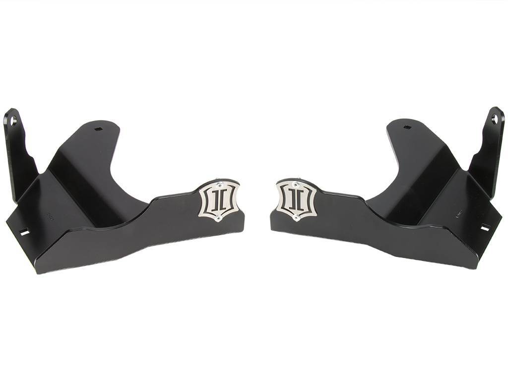 ICON Vehicle Dynamics' bolt-on skid plate system offers the ultimate in lower control arm protection for both on and off-road use. Reduce the risk of lower arm failure during everyday driving, running offroad trails, getting to your favorite hunting or fishing spot, or crawling in mountainous terrain. This skid plate system will allow you to slide over rocks and debris all while helping to protect your lower arms from trip-ending damage. Made from 3/16" laser cut steel, our Tacoma lower arm skid plates offer extreme durability and a precision fit for easy installation.;The ICON bolt on skid plate system also serves as a locator for the lower shock mount for our S2 Modular Performance Shock System. This modular approach allows you to install these skid plates without waste if you decide to upgrade and add the full S2 system down the road. You are able to purchase knowing it is 1 of the 3 components you will need to run the S2 Secondary Shock System, giving you the opportunity to build in stages if you choose.