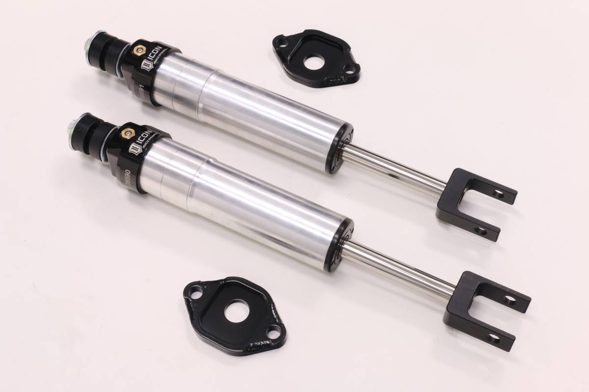 Take the performance of your 2011-2019 GM HD truck to new levels with the ICON Vehicle Dynamics Delta Joint tubular upper control arm kit. All ICON tubular upper control arms are constructed from CNC bent 1026 DOM steel tubing and then powder coated to a semi-gloss black finish for maximum strength and corrosion resistance. ICON upper control arms are engineered with built-in caster correction for optimal alignment specifications and confidence inspiring handling. A main benefit of ICON upper control arms is the increased wheel travel (nearly 50%) when paired with our 2.0 or 2.5 series shock absorbers, this translates into superior performance and ride quality for your 2011-2019 GM HD.;These upper control arms feature ICON's patented Delta Joint. The Delta Joint is a heavy-duty high angle ball joint that combines the durability of a ball joint with the performance characteristics of a traditional uniball. While the industry standard uniball does a great job of allowing the control arms of a vehicle to articulate with little bind, they do have an inherent weakness that leaves more to be desired when used in a daily driven application - exposure to the elements. The Delta Joint features a zinc plated housing providing the first layer of corrosion resistance, while a tough grease seal keeps potentially harmful elements out of the inner workings of the joint. Metal on metal construction and a greaseable design increase the longevity of the Delta Joint while at the same time allowing for noise-free operation. What makes the Delta Joint unique is that it brings the best of both worlds to ICON upper control arms with features that make it more robust than a uniball, and at the same time capable of greater angularity than a typical ball joint.;To ensure compatibility, ICON is no longer offering GM 2500HD/3500HD upper control arms as individual components. Upper control arms can only be purchased in unison with ICON shock absorbers as a complete system. The included ICON Vehicle Specific (V.S.) 2.5 Series shocks are designed and built to give your vehicle outstanding performance off-road and a smooth ride on the street. These shocks are configured specifically for each application in both length and damping tune. Like all ICON'S Shock Absorbers, V.S. 2.5 Series shocks are 100% rebuildable and 100% revalveable. The larger diameter and oil volume of ICON 2.5 IR Series shocks provide better ride quality and heat dissipation properties than the standard 2.0 Aluminum Series IR Shocks. If you are looking for a more user defined tune, consider looking into the Compression Damping Control Valve (CDC Valve) shocks.