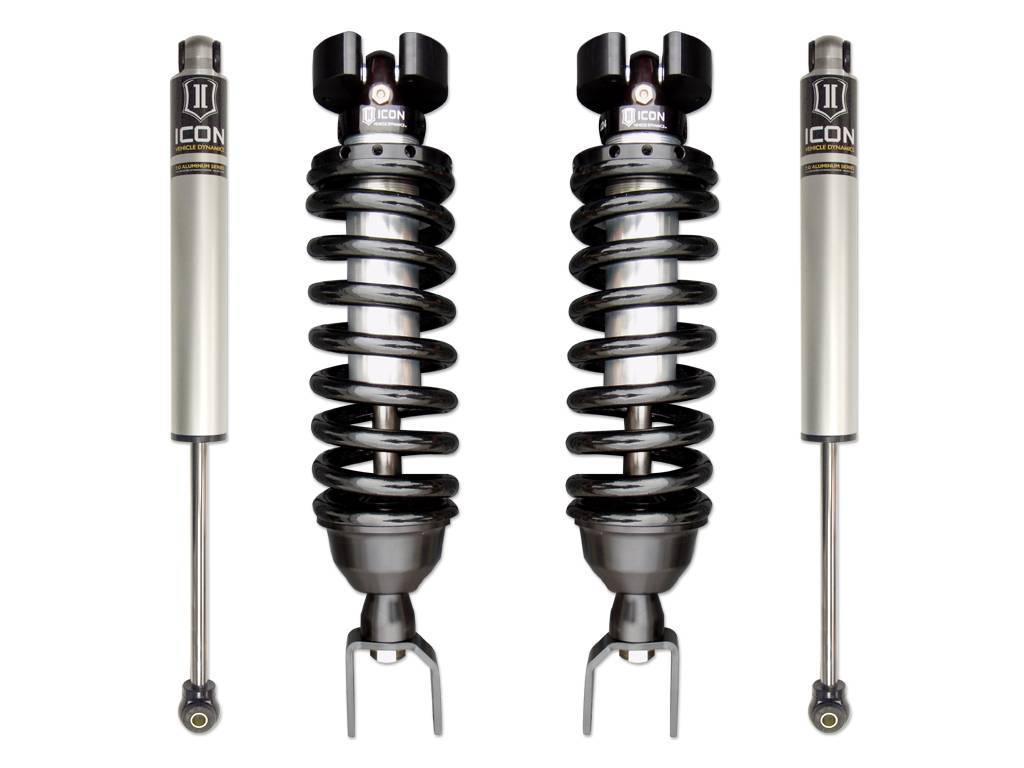 ICON Vehicle Dynamics Dodge Ram 1500 4WD suspension systems are designed with maximum performance and the serious driver in mind. ICON engineers primary focus is to increase wheel travel and damping ability, which translates into outstanding vehicle control and ride quality both on and off-road. The Stage 1 system includes vehicle-specific tuned 2.5†coilover shocks featuring an internal reservoir for exceptional cooling properties and ICON-engineered Eibach coil springs for superior vehicle “feel†through the range of travel. These coilovers are also height adjustable from .75-2.5†allowing the use of larger, more aggressive wheel and tire combinations. ICON 2.0 Aluminum Series monotube rear shocks utilize a vehicle-specific valving that balances the performance of the truck from front to rear. The ICON Vehicle Dynamics 2009-2018 Dodge Ram 1500 4WD Stage 1 suspension system is an excellent choice for those drivers looking to enhance the capabilities of their pickup on the road as well as in the dirt.