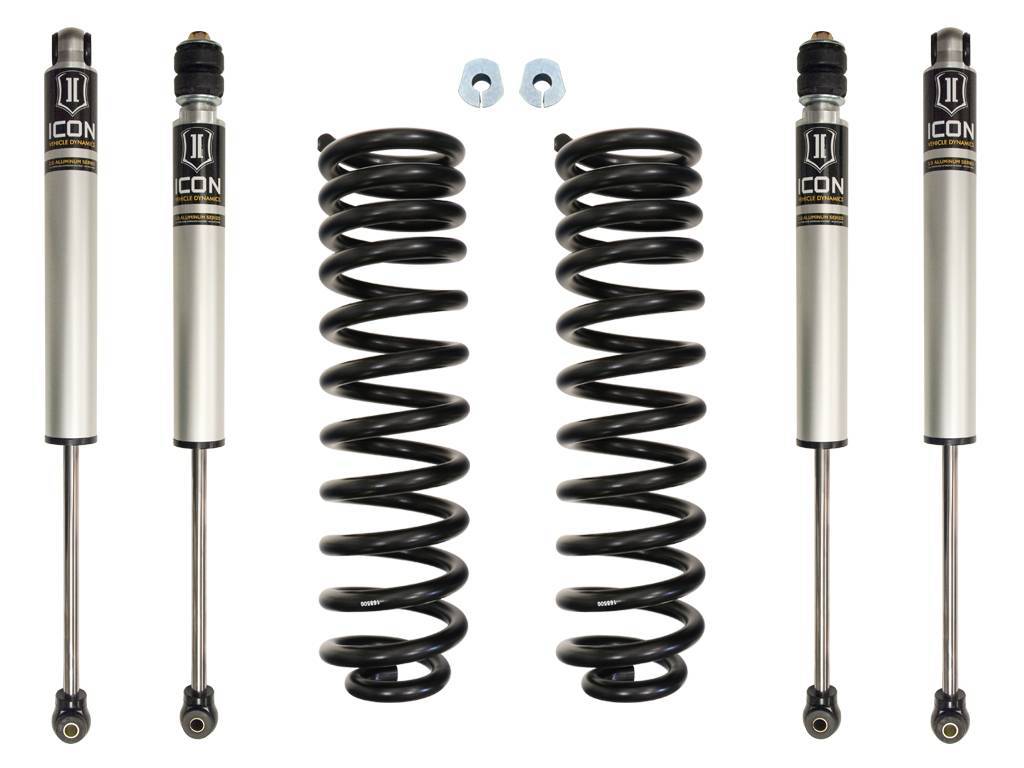 This ICON Vehicle Dynamics 2.5†suspension system is a great way to level your 4WD 2017-2019 Ford F250/350 Super Duty while drastically improving ride quality and performance. This entry level system is perfect for on-road and towing use, as well as mild off-road use like job site duty and washboard gravel roads. ICON's Stage 1 System is comprised of dual rate coil springs, alignment cams, and ICON 2.0 Aluminum Series front and rear shocks. With the endless hours ICON has spent testing and tuning our suspension components and shocks as a complete package, you can rest assured you have the best suspension solution on the market.