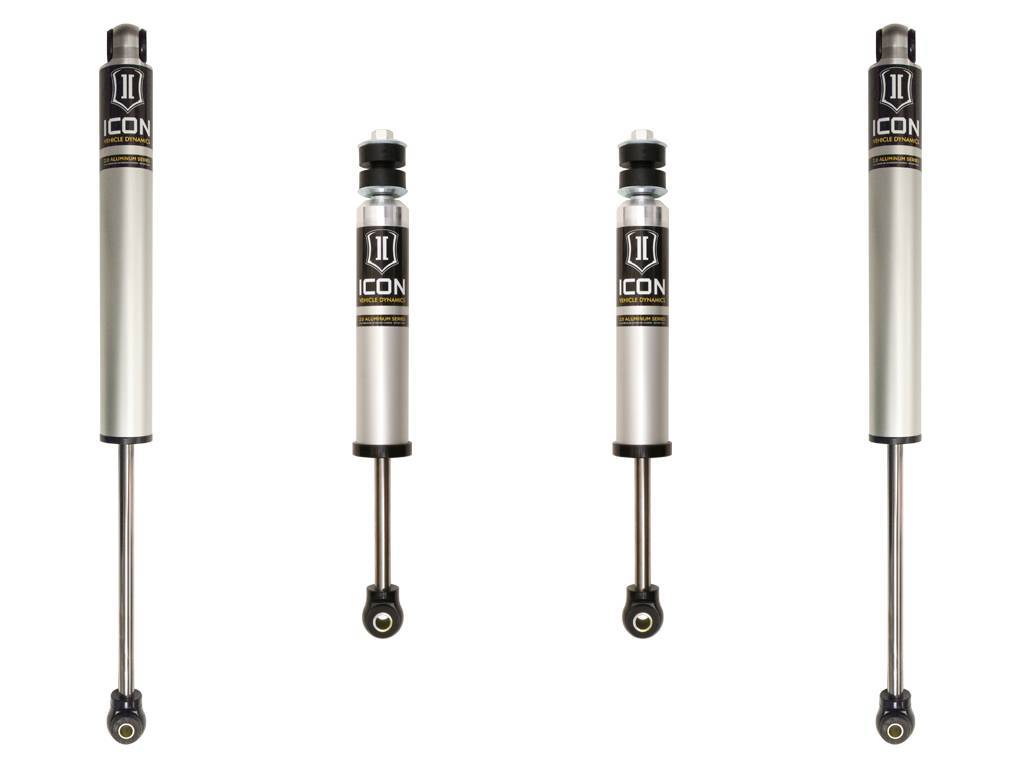 The 2001-2010 GM 2500HD/3500 requires significant shock damping to comply with the massive spring rate of the factory torsion bar system. ICON Vehicle Dynamics has developed a range of suspension systems with optimized vehicle specific shock damping. These systems offer excellent on and off-road drivability. While driving the construction site or trails to your favorite dirt bike location, ICON wants you to get there in comfort just like your drive to work. ICON's Stage 1 system is comprised of V.S. 2.0 Aluminum Series IFP front shocks and 2.0 Aluminum Series IFP rear shocks. The ICON vehicle specific tuned shocks are the key to attaining optimum ride quality and getting that desired comfort with the ¾ & 1-ton working capability.