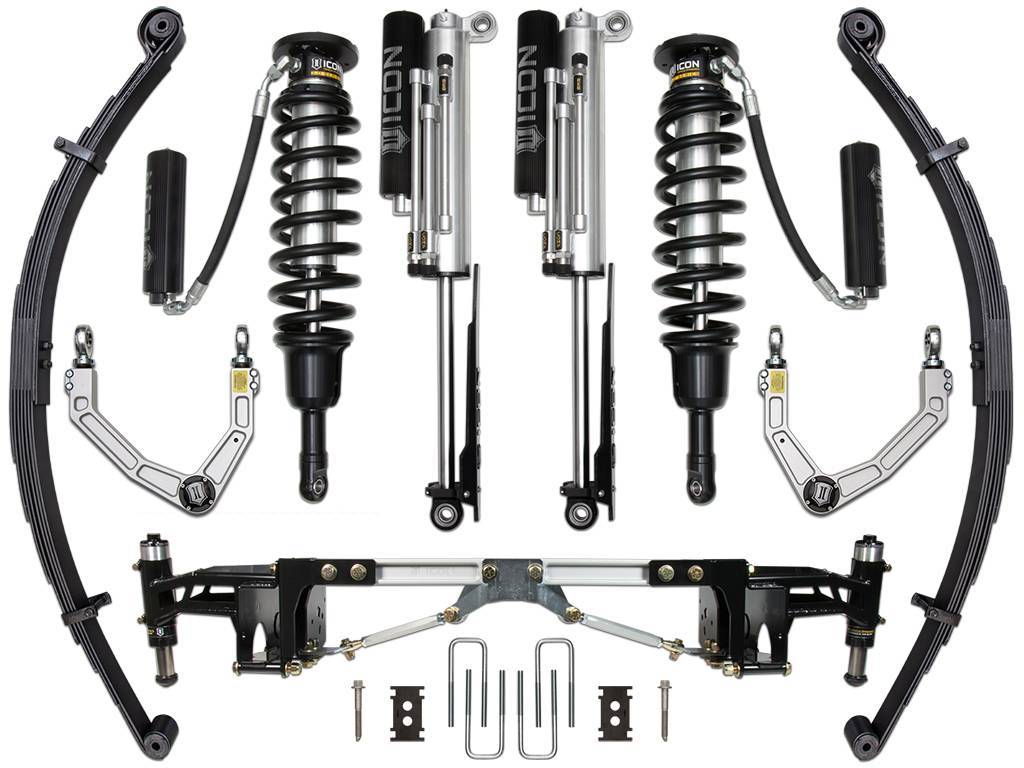 After hundreds of hours of R&D and thousands of miles of real world on and off-road testing, ICON engineers have developed products that provide a true performance upgrade over the factory components found on the 2017-2020 Ford F150 Raptor. The Gen. 2 Raptor is faster, lighter, and smarter than its older brother - suspension mounting locations have changed, a significant amount of weight was trimmed off of the truck, and new technology has been introduced both on the side of safety and performance. In typical ICON fashion, the new Raptor was pushed to its limits in stock trim to build a list of performance “needs and wantsâ€. After this process, the ICON engineering team began to go over the truck front to rear to identify any opportunities to overcome the limits of the OE suspension and achieve the gains laid out in the previous phases of R&D.;The front end geometry of the Gen. 2 Raptor was found to be fairly similar to the previous model truck, however the shock mounting points had been moved higher up on the chassis. Seeing this as an opportunity, the team was able to design a 3.0 Series coilover that has more shaft travel while utilizing a barreled coil spring for more efficient packaging. The vehicle-specific valving featured in these shocks and the all new ICON-engineered spring work together to provide exceptional on-road ride quality with excellent off-road characteristics. ICONs multi-stage hydraulic “Bump Zone†adds to the performance capability by providing an exponential increase in damping ability during the last 40% of compression travel for superior bottom-out resistance. In the ride zone, these 3.0 Series coilovers see a 50% increase in damping ability with the use of a significantly larger piston than what is found in the factory shocks. New 10†finned aluminum reservoirs provide a generous amount of shock oil while also providing an increase in surface area (over 200%) for enhanced cooling and consistent damping. The addition of ICONs CDC Valve technology provides 10 settings of damping adjustment allowing the end-user to adjust the “feel†of the shocks for different terrains and vehicle cargo configurations.;ICON's billet aluminum upper control arms are designed with built-in caster correction for predictable handling and feature on-vehicle camber/caster adjustment for precise vehicle alignment. These upper control arms include ICON's patented Delta Joint. The Delta Joint is a heavy duty high angle ball joint that combines the durability of a ball joint with the performance characteristics of a traditional uniball. While the industry standard uniball does a great job of allowing the control arms of a vehicle to articulate with little bind, they do have an inherent weakness that leaves more to be desired when used in a daily driven application - exposure to the elements. The Delta Joint features a zinc plated housing providing the first layer of corrosion resistance, while a tough grease seal keeps potentially harmful elements out of the inner workings of the joint. Metal on metal construction and a greasable design increase the longevity of the Delta Joint while at the same time allowing for noise-free operation. What makes the Delta Joint unique is that it brings the best of both worlds to ICON upper control arms with features that make it more robust than a uniball, and at the same time capable of greater angularity than a typical ball joint.;The rear of the updated Ford Raptor was a highlight for ICON engineers, as new changes proved to be for the better. One significant change was that the shock mounting layout went from a parallel style setup to an offset design. While this is great for controlling axle wrap, it required a thorough reevaluation of the way ICON shocks would need to function to make the most of the refreshed rear end. In the R&D process it was found that Gen. 2 had more available wheel travel than the original Raptor, and by way of an offset upper eyelet ICON engineers laid out a 3.0 Series bypass shock that maximized travel while utilizing the factory shock mounts. To control the rear end in specific ranges of travel, these shocks feature 3 unique bypass zones – 2 on the compression stroke and one rebound. Unlike other shocks that have a loud bypass “click†when functioning, ICON bypass valves feature damped valve stops for quiet and precise operation. Easy-to-adjust knobs allow for quick changes to shock tuning without the need for tools, enabling the user to dial in their ride with minimal down time. When in use on and off-road, ICONs patented Anti-Wobble Link stabilizes the shocks to prevent rotation and possible collision. Additionally, urethane shin guards protect the shock shafts and rod ends under grueling off-road conditions.;The function of the bump stop is to control and limit the final position of the suspension during up-travel. The factory bump stops have a limited energy absorption capacity and an uncontrolled release of this energy upon rebound – translating into a harsh ride and poor handling during more aggressive driving in rough terrain. ICON addresses this weakness with a hydraulic rear bump stop kit which includes heavy duty steel clamshell brackets, a billet aluminum frame crossmember, adjustable tension rods, hydraulic bump stops, and all of the necessary hardware required to complete the installation. Combining all of these components helps to increase energy absorption and chassis rigidity resulting in predictable handling and confidence inspiring performance.;To compliment ICON's rear 3.0 Series bypass shocks and hydraulic bump stop kit, ICON engineers decided to scrap the OE rear leaf springs and develop a replacement that addressed a couple issues found in the R&D process. The result is a user-adjustable, multi-rate leaf pack that offers a major performance gain for almost every Raptor setup imaginable. To increase the ride quality of the truck and gain additional droop travel, the spring rate