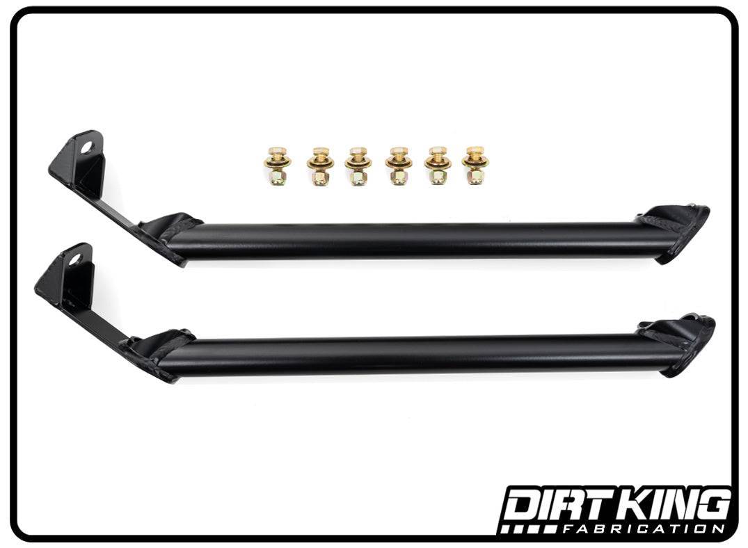 The Dirt King bed supports with integrated whip mounts were designed to keep the factory truck bed rigid while off roading and prevent splitting the seams. They're fabricated from 1/8” steel and includes all necessary hardware for the install.