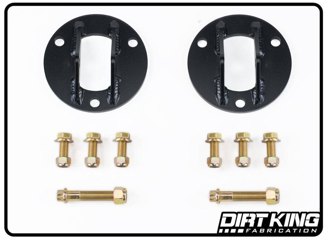 The coil bucket shock mounts are designed to mount a standard coil over into the factory coil bucket. These are the same shock mounts used with Dirt King long travel kits. They are set up for 1.5” shock spacers and include all mounting hardware.