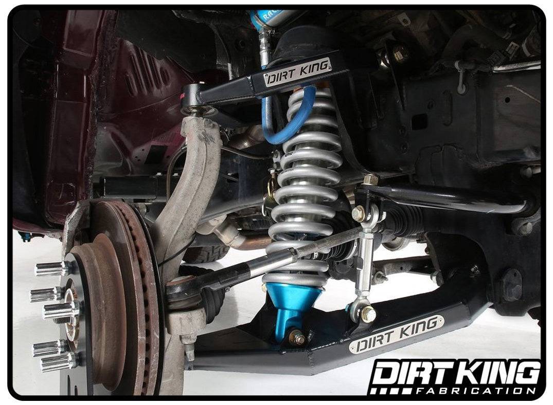 The Dirt King long travel kit was developed to drastically improve the vehicles off-road handling without compromising its day to day driving characteristics. This suspension system allows for 13.5” of travel and accepts up to a 37” tire. The kit is compatible with 2WD models and 4WD models along with the purchase of extended axle shafts. Our upper and lower arms are designed with 1” stainless steel uniballs for the outer pivots instead of ball joints for strength and increased articulation. This kit is the first of its kind, it’s a complete bolt on application with no cutting or welding to the frame on 4WD models. The suspension system was originally developed for Ram Trucks new concept vehicle, the Ram Rebel TRX which was released in mid-2016. After its amazing performance we decided to put the kit in production and make it available to the public!