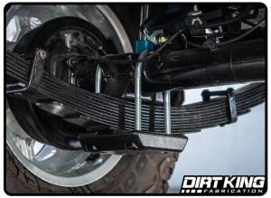 The long travel spring under kit was designed for maximum rear suspension performance without making the installation difficult for average person. For best results this kit should be combined with the Dirt King bedcage and Deaver H70HD leaf under springs. The complete package paired with a custom drive shaft allows for 18" of usable travel. The factory drive shaft can be retained but will limit 2" of down travel. Even with the 2" travel loss it still achieves a respectable 16" of wheel travel.