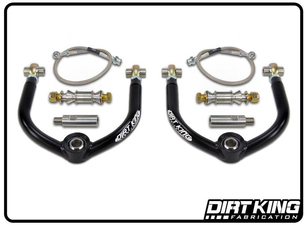 The Titan swap kit is the most affordable route to improve your vehicle’s front-end handling. This kit is developed to pair with Titan lower control arms to increase the front track width 3” per side. The kit is both 2WD and 4WD compatible along with the purchase of extended axle shafts. The upper control arms are designed with increased castor and repositioned pivot angles reducing stress on the joints. The increased castor allows for proper alignment and improved handling. We also replaced the weak factory ball joints with 1” stainless steel uniballs for maximum strength and increased articulation. To mount the arms to the spindle we include high grade 17-4 stainless steel misalignment spacers and military grade F911 hardware. All of the components on our upper control arms are rebuild-able or replaceable to make this product last a lifetime. The arms come preassembled and include detailed instructions for easy installation.