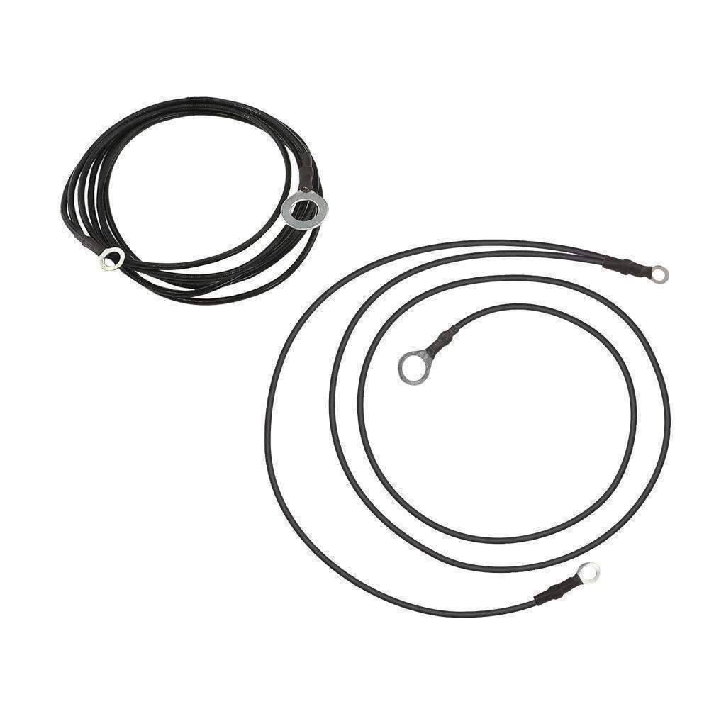 Ground Strap Kit for Antenna, Radio, and Intercom Systems combines an NMO ground cable and a radio/intercom grounding cable. This kit improves performance and distance of your two-way radio, antenna, and intercom system. The NMO Ground Cable mounts to the antenna's brass fitting and to your roll cage, enhancing performance for antennas not on metal roofs. This kit is compatible with 3/8in NMO Cable only and now features black wiring. The grounding cable mounts to your existing intercom, RM60 radio, and to a bare metal surface, reducing RF interference within your system. This is particularly valuable for powder-coated frames. The cable length totals 42in, with 30in from intercom to chassis ground.
