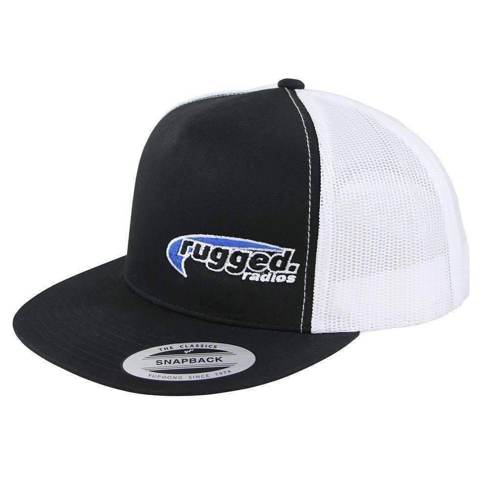 Rugged Radios Flat Bill Snapback Hat - Black and White | HAT-S2-FB