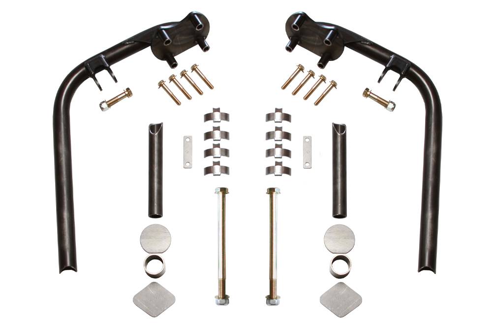 4130 prebent chromoly shock hoops are designed to install secondary 2.5 inch shocks while retaining stock lower control arms.
