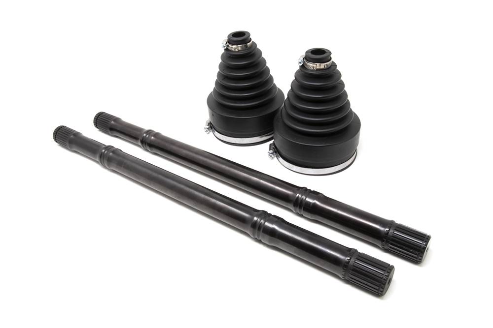 Long travel systems have wider upper and lower control arms that extend outward from the vehicle. TC custom extended axle shafts are designed to keep your 4WD system functioning when a long travel kit is installed.