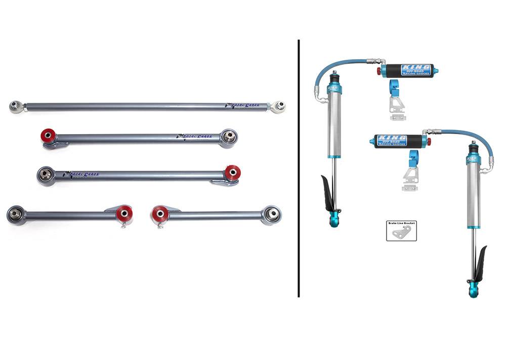 Our KING 2.5" rear shock and link packages offer improved rear end performance on your 4th Gen Tacoma. With tough 1.5" .188 wall 4130 chromoly construction and urethane pivot bushings our links are stronger and offer less deflection than OEM links with rubber bushings. Paired with high performance KING 2.5" diameter rear shocks with remote reservoirs and compression adjusters you can fine tune your ride based on your driving preferences.