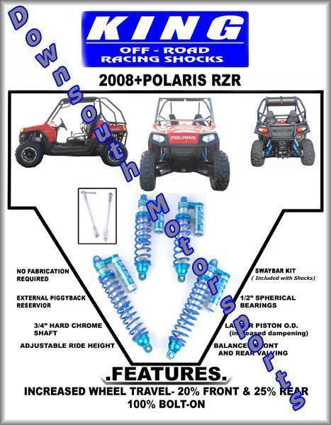 Polaris RZR '08-Up King UTV Performance Shock kit with compression adjuster