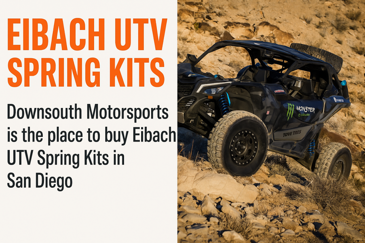 If you’re looking to improve your UTV’s handling, durability, and comfort, Eibach UTV Spring Kits are the upgrade you’ve been waiting for. Downsouth Motorsports proudly serves as San Diego’s trusted suspension specialist, offering Eibach kits for Polaris, Can-Am, Yamaha, Kawasaki, and more.